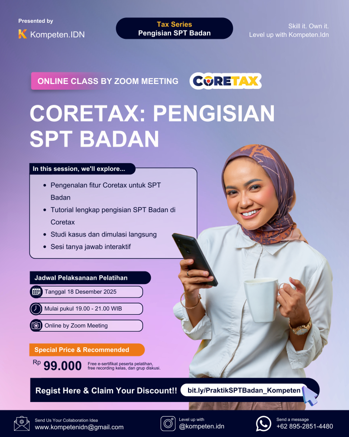 Resmi Diterapkan di tahun 2025 Saatnya Kamu Update Skill Pemahaman Seputar Coretax dengan Mengikuti Pelatihan Ini Agar Kamu Tidak Salah Langkah !!!Materi Pembelajaran :